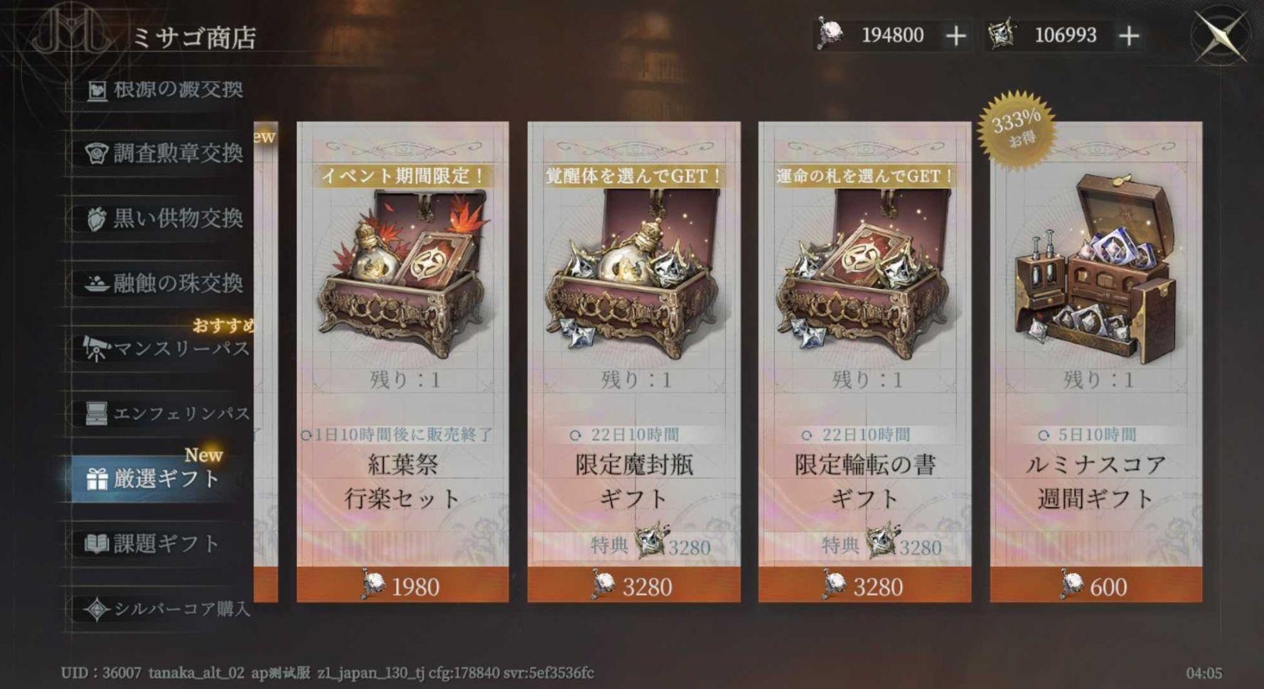 アップデートを記念して、お好きな覚醒体と運命の札を選べる特別な厳選ギフト「紅葉祭行楽セット」が登場!