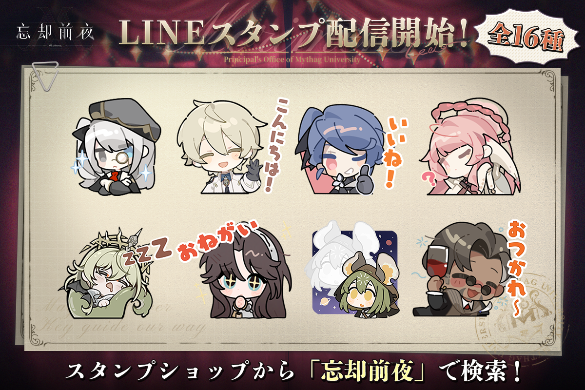 また、以前より多くのご要望をいただいておりました『忘却前夜』公式LINEスタンプにつきましても、ハーフアニバーサリーを記念して、本日より販売を開始いたしました。
