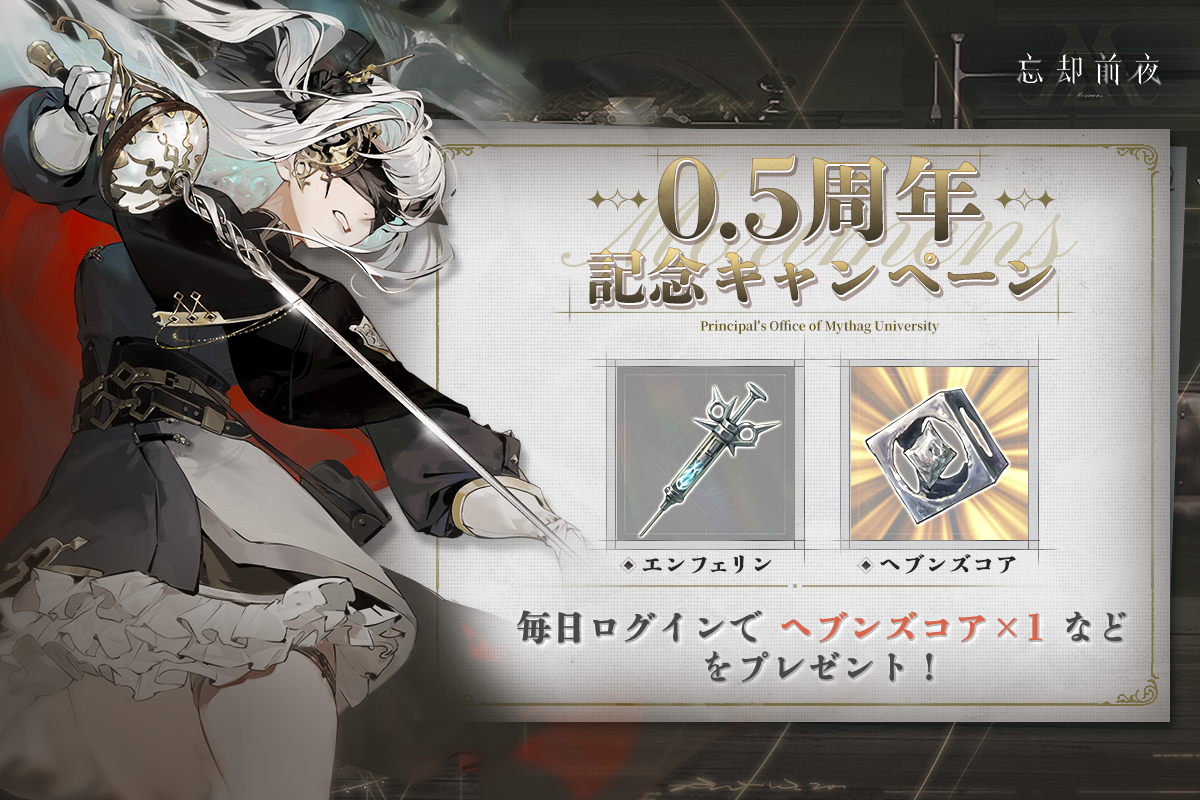 0.5周年を記念して、ミッションを達成することで「限定SSR覚醒体」が1体選んで貰えるイベント「銀の鍵の誓約」を開催!
